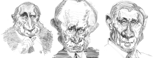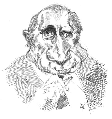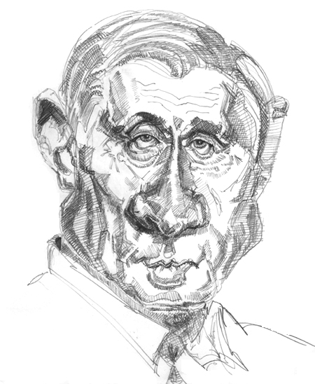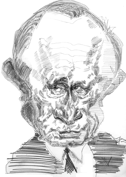 Your Assignment PS - Almost forgot -- If I had an assignment I'd say pick one of the versions of Mr. Putin above, get some really thin tracing paper and trace one of them with as much accuracy as you know how. (I used one of those plain old mechanical Bic pencils you buy in a pack of 10 or 12 at the local grocery store in the school supply section; these keep a pretty sharp line.) THEN take a second sheet of tracing paper, put it over the tracing you just did and exaggerate anything that looks exaggerate-able to you. Feeling really gutsy? Take another sheet of tracing paper and tape it over (maybe tape it just at the top because you'll probably want to flip the paper up and down while you draw it); tape it over your first exaggeration and exaggerate some more! :-) Feeling really really gutsy? Repeat this again or even 2 more times. You might amaze yourself with how wild your likeness gets :-). Go for it!