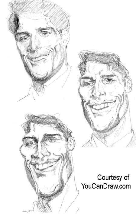 He has strong dimples and lines around the mouth. When drawing anybody, I've