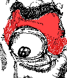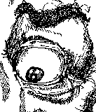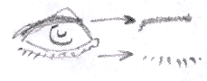 Look at this picture Hopefully it will make more sense to you now. Pick out the hairy eyebrow, the bony brow, the upper lid, the lower lid, the eyeball, the iris, the pupil, the highlight within the pupil, and the "canthii": Identify the anatomy you've learned, and... ...remember you're working in Some final details Ok. Here's a couple of last second details: the "bags" of the eye (the infra-orbital area) and the eyelashes. I'm not going to go into great detail here, you can explore this more on your own, but here are the basics. Eyelashes: Unless a person has huge, monstrous eyelashes, where they're a defining characteristic, you're probably not going to have to worry about them too much. Women are generally drawn with larger lashes than men are. They add a little more of a feminine touch.
