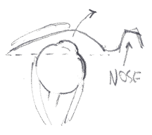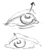 Rodney Dangerfield Eye Other things the eyelids do... The lids also "tent" slightly depending on which way you're looking: the bulge of the cornea deforms the oval shape of the lids to a more triangular shape, like this... Bulging of the lids caused by the cornea Or like this... More bulges, this time looking left Here's some front views of the eyelids as they adjust to the movement of the eyeball and corneas beneath it. The high point of the lids is over the pupil/cornea. Learning this will help you spot these subtle features in other peoples eyes. Front views of the eye showing