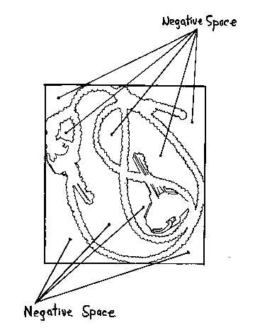 Step 3 Draw the "Negative Spaces" around the Eyelid Now begin drawing the eyelid but do so by draw the spaces. Concentrate on the spaces as if they were real objects. Sometimes you need to stare at the spaces for a moment or two and the magically, your mind accepts them as real - if unnamable - forms.