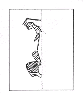 Did you feel any conflict or confusion? (Note: This is copied directly from the first lesson - everybody, even seasoned artists who've taken a break from drawing - go through this adjustment. I'm putting it here for you as a reminder that it's perfectly normal to go through these phases while drawing. Don't despair!) In drawing the second profile, the mirror-image profile, did you experience any of the conflict I predicted you might feel? Any confusion? How'd you get past it? To get past this, what did you do? Did you find yourself scrambling for another way to approach the task? Some students say they had to picture the completed composition in their heads before they could "see" how to take the next step. Did you find yourself looking back and forth between the different parts of the ear? Comparing, measuring sizes and distances, reckoning angles? If you finished the picture and it look something like a symmetric pair of noses, then you were doing it! The point of this: That your drawing looks like two noses, symmetric and all, is not the point here. If you found yourself making measurements and estimations, if you found yourself making statements like "this curve goes out like this, and the other one goes in the opposite direction over here like this, this line angles away in relation to that one going in", then you were in R-mode. Correct representation will come. Lots of students comment they entirely forgot they were drawing 2 noses. They were just caught up in going back and forth, comparing one section of line to its opposite section on the other side of the drawing. Kasbohm & Company's YouCanDraw.com © Copyright, All rights reserved 1997 e-mail: jeffkaz@YouCanDraw |