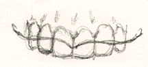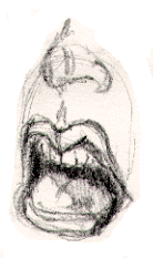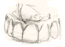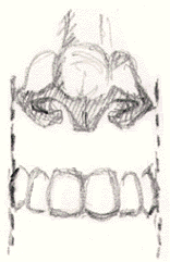 2) Now, do the lower teeth like you see in illustration #7 above. Do ten drawings. 3) Next do five drawings of illustration #3 above 4) As a final drawing for this section, do five drawings of illustration #6 above. But, as a warm-up for this last part, do an upside-down drawing of #6 to get you into r-mode. After you've done the drawings above, you should have a pretty good feel for what teeth look like and how it feels to draw them.