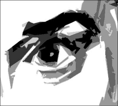 By the way, does this look familiar? It's just a blown version of Ani's right eye with the number of gray values reduced to just four or five.