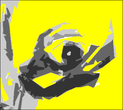 Here, in this next picture - and not to belabor this any further - all the gray areas have been blackened, the white areas yellowed and the picture has been flipped to make it look like non-sense to your brain. (Click here to see the yellowed-accented picture right side up.)
