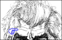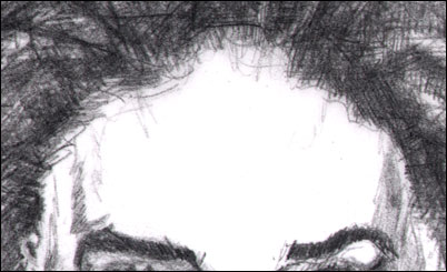 If you were in an exaggerating mood, you could amplify the existing shapes and contours of the shared line. At the very, very last This brings us to the very last section in this third and final In-depth lesson. In fact, talking about the hairline segues us very nicely to a short description on drawing hair. And Ani sure has a head full. But I think we'll finish up this lesson on the next page - part five. In Part V you'll see how the hair was put together on Ani, you'll see a caricature I started of Ani and instead of me doing further caricatures of Ani - which we did of Hugh Hefner and Keith Richards - you'll get to do the caricaturing. Here we go...Click below Part V for hair, your chance to caricature: the final section of the book: