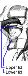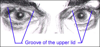 Very lastly, the correct anatomic name for what we're calling here the "groove of the upper lid" is the "palpebral fold". It's shorter in name, and it's the proper name, but "groove of the upper lid" just explains it better. That's my opinion anyway. ( back to top )