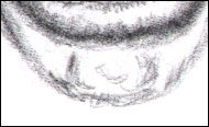 As you move bit by bit down the face, from eyebrows to eyes, eyes to nose, nose to apron of the upper lip, to the lips and mouth and the shadows in these area, you naturally reach the chin and jaw. In fact, after having discussed the longer shadows and lines of tension that stretch from the dimples to the chin we've got the chin half licked. So to speak. About the only thing left to look at is the dimple of the chin and the little pad of muscle around it.