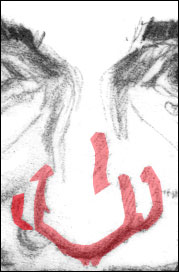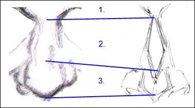 Compare that illustration to the original realistic pencil drawing of the nose: