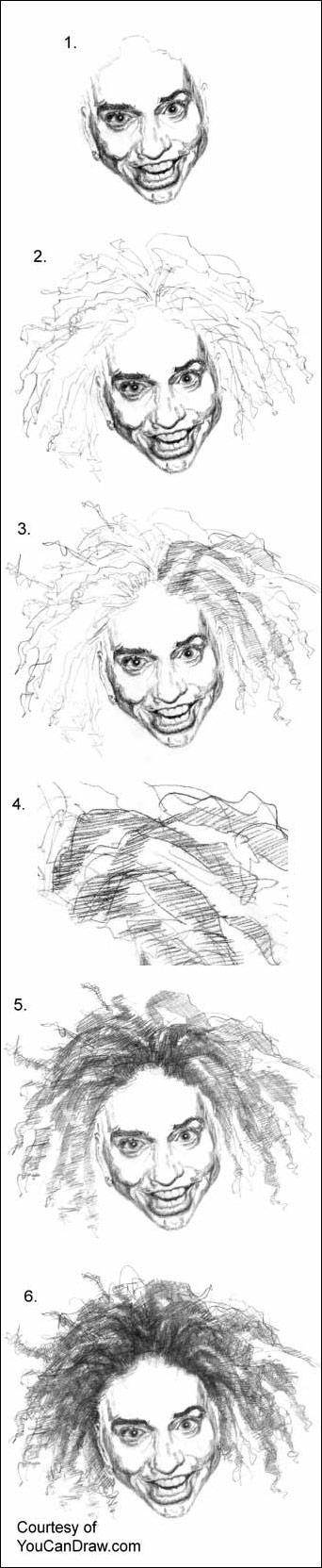 is a rough outline of rasta locks, er, dread locks actually. Note the simple,