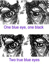 on the right), is very dark - it has a black iris. Pete has blue eyes and