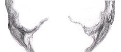 When dealing with the mouth we're dealing with curves and and rectangles (like teeth), and spheres and cylinders and constantly changing highlights, and shifty shadow shapes and the ever unsteady dynamism of lips that change with every spoken word and emotion. Still, we discovered we could find some characteristic constant - at least one you might find within an expression frozen on a photograph or through familiarity with any given subject (in this case Ani). Characteristic enough to draw anyway.