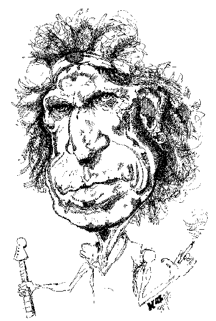Our Game Plan Here's our game plan. Like I just said, since we're somewhat limited with what we can do by copyright laws, I'm going to do this: the caricature at the top of each section will be the caricature of a celebrity picture I have off-line. (By law I can't put this photo or picture on-line.) We're going to evaluate the caricature and act as if that's the original - and then we're going to caricature the caricature so you can see the process at work. Don't worry, I think you'll see that caricaturing a caricature uses all the same faculties you'll need to develop for drawing "real" people, photos, or drawing in a "live" situation. I'm going to make sure each case study starts with a fairly realistic portrayal so each progressive exaggeration will make sense. We're going to look at all the different parts of the subject: shape of the head, hair, shadows, mouth, ears, eyes, etceteras. We'll isolate the basic shape of each of those and we'll try to identify what makes the face "work". Some celebrity faces will be real easy to zoom in on and grab one or two features. Others, it's much more subtle. I'll try to keep it simple. A dash of realism - 2 kinds Like you saw in the introduction section of lesson 15, there's lots of different ways to approach drawing a caricature. The trick is in organizing your approach - systematically but with enough flexibility so that if one approach doesn't yield anything, you can try a different one. Eventually you'll just be able to look and say "yes, here's where I'll start". So lets start! Warm-ups: Getting into character Look at any picture of Keith Richards. Out here in LA, actors will ask "how would it feel to look that way? What's that got to feel like in my body? How would I breathe? How would I hold my shoulders? Would I slump a little? How would my eyes, cheeks and jaw feel?". Picture hundred pound weights in each hand - that you've carried around for 20 or thirty minutes - how would that feel? Is that how this guy feels? On the road for 40 years, cigarette smoke constantly rising into your eyes. (I don't know about you but I'm getting tired just thinking about this.) Putting yourself in the shoes of the person you're drawing and then observing the changes you see in your own face and body can give you a lot of insight about where you'll see the changes and characteristics in another person's face and constitution. A Downer? Drawing shakes you out of it! That could be a downer sometimes, but it's a way to step into doing a caricature. You'll shake that off once you get drawing anyway because drawing releases you from that kind thinking. Drawing pulls you into each perceptive moment as it happens. That's the shift into the artistic mode. In caricature, you make yourself and others laugh - so there's always an antidote right around the corner too. (That doesn't mean you turn into a cold, compassionless person. It just means you take a step back and look at what's in front of your nose. The best doctor or nurse or any professional for that matter must be able to do this. I'm trying to convince you it's not a cold thing. You miss the details if you don't. In fact, one person I've read says "God is in the details" - so being in tune with your senses, in this case your sight, is step number one.) So, without further ado, lets look deeper at...drum roll please... Mr. Keith Richards. On with the show - lets