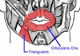 section. Here's the triangularis and the orbicularis oris: