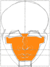 half 2) Then we'll roughly "skewer" the trapezoid shape of the forehead over this line just like a hog at a big 'ol Texas BBQ: