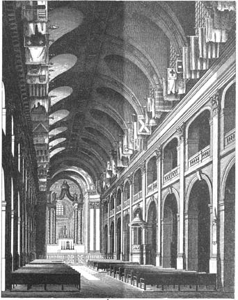 Look at how all the lines converge on the implied vanishing point (you have to use a little imagination); notice how straight those lines are See how the all the lines in this picture seem to converge on a single point somewhere beyond the far end of cathedral? What is most important, note how straight all these lines run. For example, note how straight these lines are: the line just under the flags on the top right, the lines above and below the railing under each archway at the upper right. Here, see what I mean: