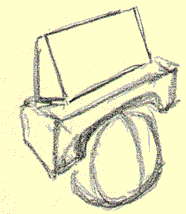 three-quarter view presents challenges uniquely it's own. More building blocks This section builds on the previous sections and parts of lesson 14. Let's do a little review. (Again, words to keep in mind: vanishing point, perspective, proportion, horizon lines, "x-y-z" axiis.) The Flash Intro below uses head, neck, and shoulder shapes, but on most of this page, we're going to use just the head. (Don't want to over complicate the material, and you can extend everything you learn here to all shapes regardless of the context - perspective is at work in EVERY scene of the real world.) Get an internalized feel for these ideas now and you'll start seeing, even sensing in your body, perspective's subtle effect and power in the real world and in your drawings. Take a look at the "Flash" primer. Don't worry if you don't understand everything in it. It'll all be clearer by the end of this exercise when you draw your own 3-d blockheads.