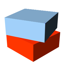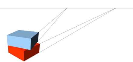 Now I'm going to throw a curve ball at you. That doesn't mean that all objects in a given scene will be pointing at the same vanishing point on the horizon. Only if they're cuboid and only if they're resting on the same plane as the horizon will they have vanishing points on the horizon. All such objects will have different horizontal vanishing points - but all the horizontal vanishing points will be on the horizon line. Make sense? Let me illustrate: if you're looking at two blocks stacked on top of each other and one of the blocks is rotated a little in relation to the other, it'll have a different vanishing point, but both vanishing points will be on the same horizon line. Here's two blocks stacked on each other, one rotated a little: