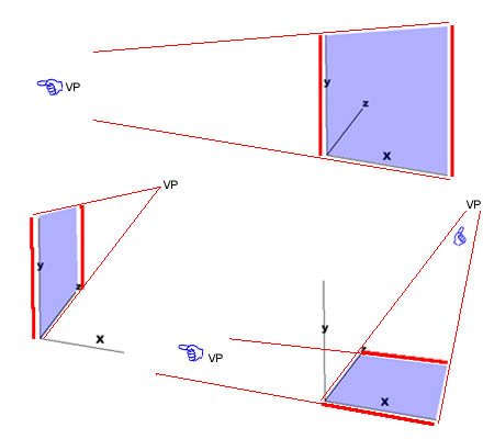 Right, they're shooting straight back in space behind the picture. Just as if it was skewered by the third uninvolved axis, kind of like this: