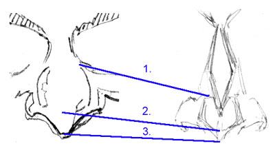 an exaggerateable attribute. On to the nose As we head north to south on Hef's face, the next major anatomic feature is the nose. As we mentioned in an earlier part of this lesson, Hef has a few notable characteristics exemplified in his nose. What we referred to earlier was the apparent pointiness of that very bottom part of the thinning wedge of the very "southern most" part of the tip of the nose and it's fleshy septum - the part that points down just beyond that.