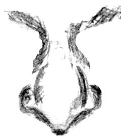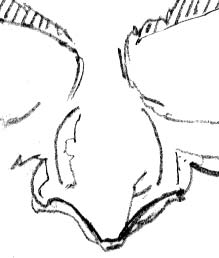 In this next illustration below, you can see the outlined version of Hef's nose. You'll see the tip of Hef's nose is somewhat bulbous as well with that pointy part extending below in the middle, bottom of the nose. Here it is: