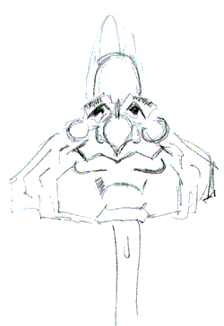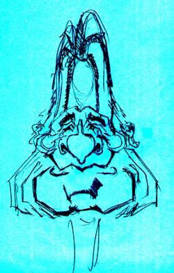 wide chin, huge flat jowls, we're getting real cartoony here. I