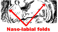 Pointing out the naso-labial folds [Tip. Compare these two examples. Look at, or imagine the relative proportion the distance from fold to fold will occupy on each person's face. If you were caricaturing these two people in the same picture, can you imagine how you'd contrast these two faces? I'd really exaggerate this width in Keith's face and make the woman's mouth, i.e. the width from naso-labial fold to naso-labial fold, almost mousy in comparison.] The incredible disappearing upper lip You can see another harbinger of age - and "too much fun" - evidenced here in Keith's lips: the diminishing of the upper lip. Lips get thinner and thinner as we grow older. Smoking, booze, drugs accelerate the natural process. The thinning upper lip As you saw above, gravity pulls the eyebrows right down to the edge of the bony brow. Is gravity selective? Hardly. It's working on every square inch of us every second of every day. You just see it's effects where skin and layers of tissue come together - at the features most notably. You can see it's effect very clearly on the lips too, especially on the upper lip. The way the upper lip is attached - anchored from just under the nose and inside the mouth right there in front of your "two front teeth" - the part of the lip you can visualize can roll right out of sight to the point where some people appear to have no upper lip at all. It actually ends up upside-down on the inside of your mouth looking at your teeth. It literally rotates around the way you unroll a tube of wrapping paper... Which is why it looks like Grandma and Grandpa's upper lip gets thinner and thinner with time - because you see less and less of it. That's the same reason you see all these Hollywood stars running to get their lips "pumped-up" - full lips are supposed to be sensuous and youthful. Like this: