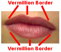 Grandma's youthful lips - post surgery Next issue: the line where lip and skin meet is a called the "vermilion border". Doctors, PAs, NPs and Plastic Surgeons will tell you any child who comes in with a laceration through the "vermilion border" is always a source of high anxiety: mis-align it and the child is scarred for life or will need another surgery. No pressure at all there. As you saw, the vermilion border and upper lip can slip entirely out of sight as time goes by. (I was lying about Grandma - she didn't have surgery. Sorry. Bad humor. Probably not even PC.)