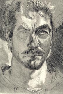 Two words on technique: 1) cross-hatching How were those different shades of gray produced in the two illustrations? Both were done in pencil. Look close. You'll see different gradations of cross-hatching, you'll see areas where the pencil is just layered over and over to achieve a near black. You'll also see areas where I erased into an area previously shaded over. In fact in some of those areas I erased until I started gouging into the paper - to get the lightest highlights. 2) The "ground" What may not be obvious in the two drawings above is "the ground". Actually the true background. Adding a "ground" is an old artist's technique. It works like this: before you draw one line on your fresh drawing paper you lightly shade the whole paper to a consistent value - again, before you begin drawing. What does this let you to do? It helps you appreciate and modify light and shadow. "How" you ask? After you draw an outline of all your shapes and features, parts will need to be colored darker (like shadows), and parts will need to be made lighter - like in the highlights. To create highlights, all you do is erase into the ground and the natural brightness of the paper comes through. To make a part darker, you add layers of color, or pencil, or cross-hatch the are alike I mentioned above. The ground serves as an intermediate shade. More on making your own ground and cross-hatching below.