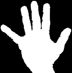 The contour is in red You observe the shared edge out there in the real world. When you record what you see on to your paper as a drawn line, you now have a contour. Your eye observes the coming together of two objects. Your hand and pencil draw the contour. The two separate objects disappear since you're attention zooms in to just the shape of that coming together of the two objects, (fingernails and palm for instance). You don't draw all your fingertips because you can't see them all the way to the tips - they're buried in you palm. And you don't draw the whole palm because it's hid by the main body of your fingers or by the angle you're viewing it. Let's isolate the contour: The isolated contour I know this gets a little sticky, but it makes more sense when you start talking about drawings. You can pick up the piece of paper with the contour line drawn on it, show it to someone else and they'll say "Interesting line. What the heck is it?" And what is it? It's a contour. Negative space: is the background. Negative space is often the "nothing" shapes, the non-object shapes that surround the object you're drawing. When you held your hand up in front of your face, it was held against a background of air - the air between your hand and whatever else that was behind it. Paint all that air black, remove the hand, and you have the very next illustration. (You'll be getting a lot more practice with negative space in an upcoming lesson.) Thinking of the background as the object Unity: And if you've read right through these definitions, this brings up the idea of unity. All those contour-shaping shared edges are unification's. Those contours represent meeting points of objects and negative spaces. How these all fit together, how their sum creates a composition - that's what unity is all about. Putting
