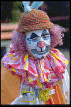 Picture 1 In the first photo our subject - the clown - is portrayed in a normal mode - the way you'd view any photo. If you were to try to draw an outline of the clown, where would you start? That is, how would you approach it? Would you draw all the details: his multi-colored neck frill? His fuzzy hair? His hat? The triangles over his eyes? In the this lesson, I want you to focus on 2 things: 1) the shape of the format (the rectangular frame around the whole composition), and 2) the shape of the areas around the clown, that is, the "non-clown" areas. Otherwise know as the "negative space". Clown Photo: Normal view. Picture 2 In the second picture here (below), I've whited out the clowns face in PhotoShop and painted the negative space, the area around the clown, with black. Now focus on the black area - start with viewing the surrounding rectangle. It doesn't resemble anything you can readily name and so your left hemisphere abandons it, allowing your right hemisphere to take over. Once you've made that shift, the task of drawing an outline of the clown is much easier, even enjoyable. (It reminds me of the "Ugly face" in Lesson 2.) The black is Negative Space In this next picture, I've flipped it and and colored it blue. Stare at it, observe it, follow around it's edges with your eyes until it starts looking like a complete and separate entity all by itself - like a piece of a jigsaw puzzle or the next state of the union. Flipped and colored Kasbohm & Company's YouCanDraw.com © Copyright, All rights reserved 1997 e-mail: jeffkaz@YouCanDraw |