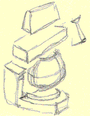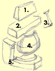 the five blocks Here are all 5 parts roughly coming together. (Look at the angle and mass of the jaw - it's a variation, but notice it still "works" - your brain still recognizes it as a face): The 5 building blocks Then we'll add a cranium to all of this and you have the latest, the greatest, the most highly evolved "chiseled from a block of wood" Mr. Johnny Average Head to date. Pick out and name the different parts. Go for it - I'll bet you can do it right now!