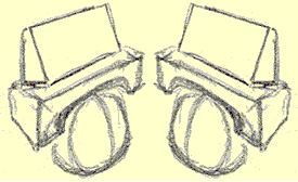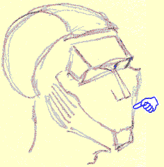 What's left? Start adding the features. And how are we going to do that? Since this is a cyber-book on caricatures, guess what? We'll do it by looking at and studying caricature's. Yes, it's finally time to start doing caricatures! BUT, and you knew there had to be a"but", review the next section on "Shapes of the Head, Part VI: Mr. Johnny Average face ". We'll be adding the vertical lines to the horizontal lines you've already learned. This will be the final map of comparison that you'll internalize and use as a reference for deciding on what's caricaturable on somebody, (if it isn't obvious.) We'll be coming back to it often as we we start analyzing caricatures - so don't worry about memorizing it right away - you'll memorize it through repetition.