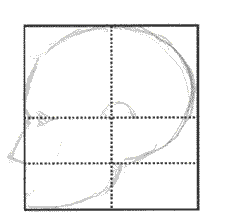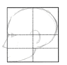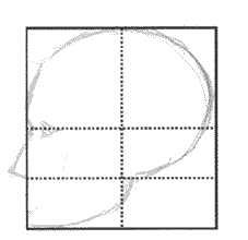 Start working your way up the forehead. Again pay special attention to the angle it forms with the vertical and horizontal lines of the format.